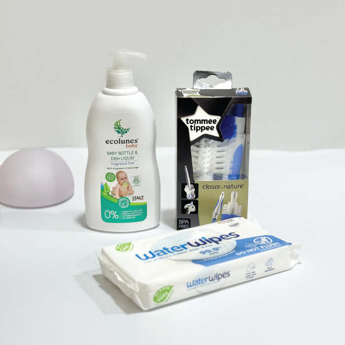 Furça dhe detergjenti që ju duhen për të larë aksesoret e bebeve tuaj.